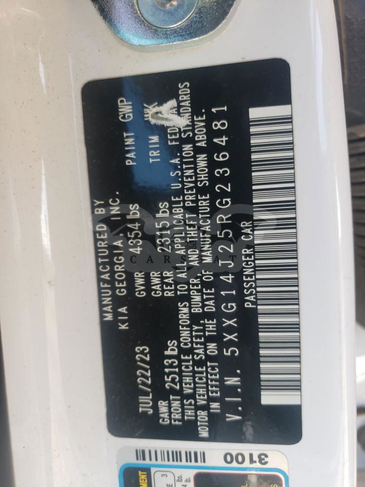 • VIN: 5XXG14J25RG236481