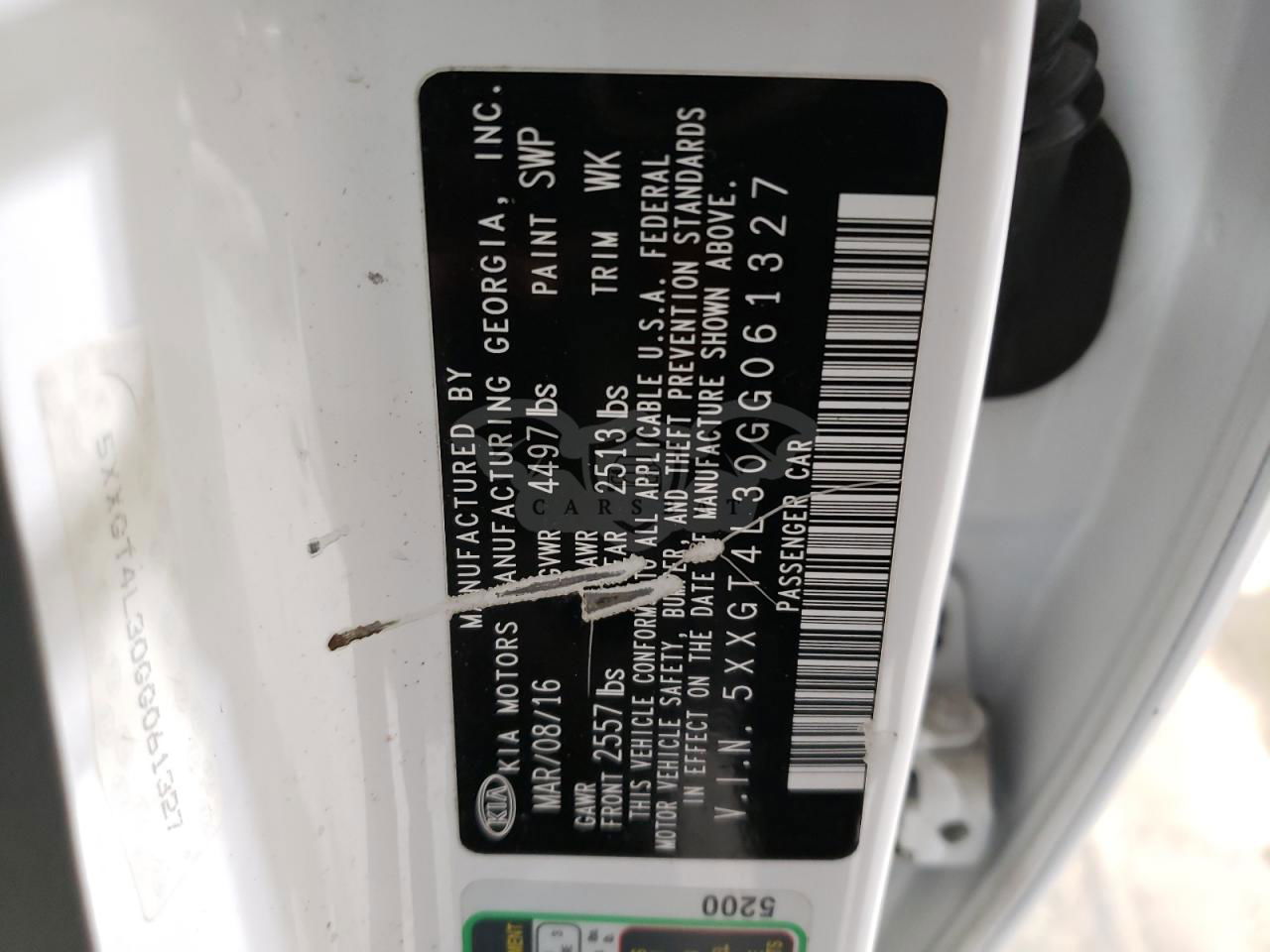 • VIN: 5XXGT4L30GG061327