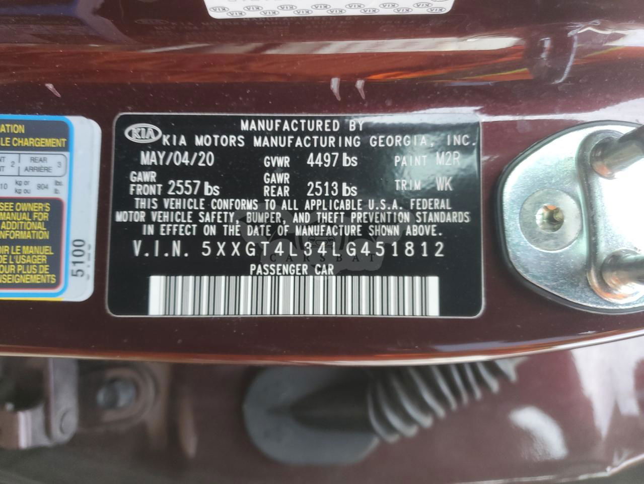 • VIN: 5XXGT4L34LG451812