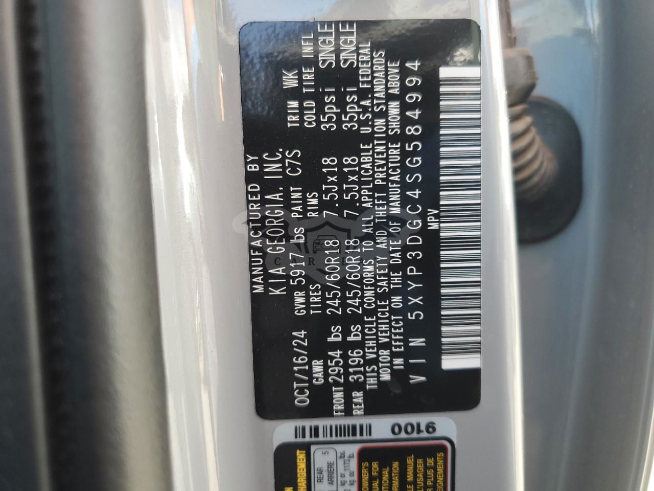 • VIN: 5XYP3DGC4SG584994