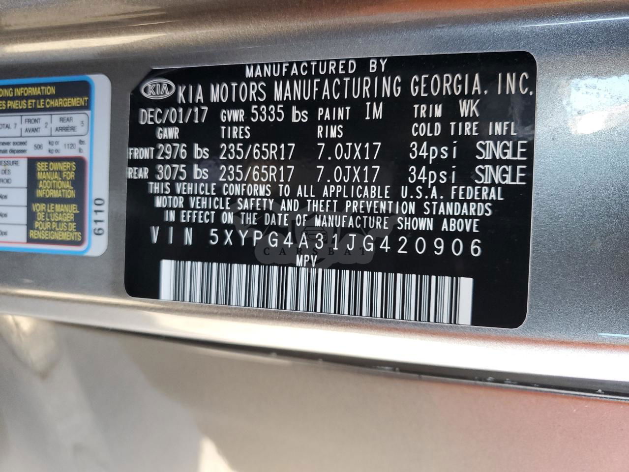 • VIN: 5XYPG4A31JG420906