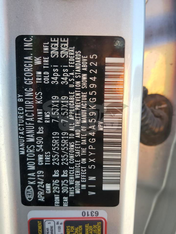 • VIN: 5XYPG4A59KG594225