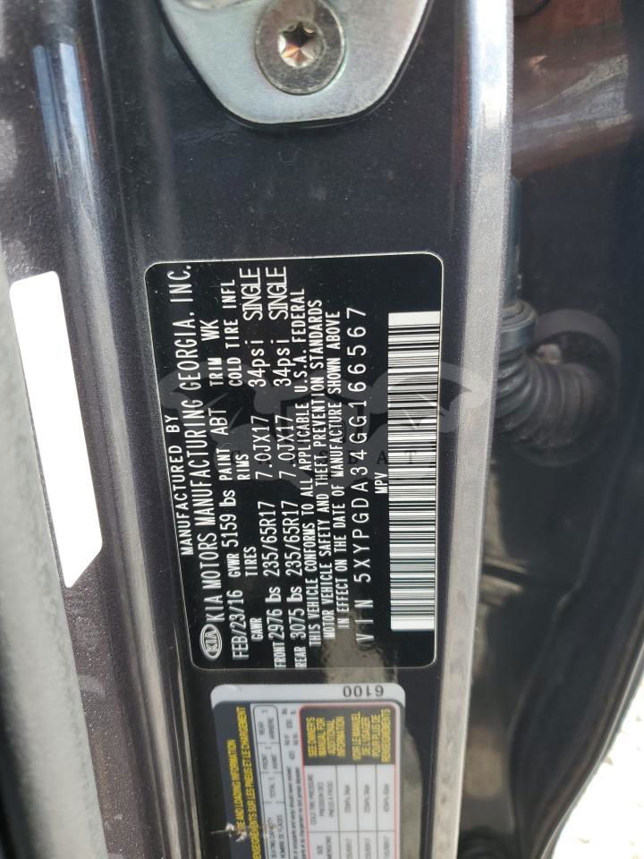 • VIN: 5XYPGDA34GG166567