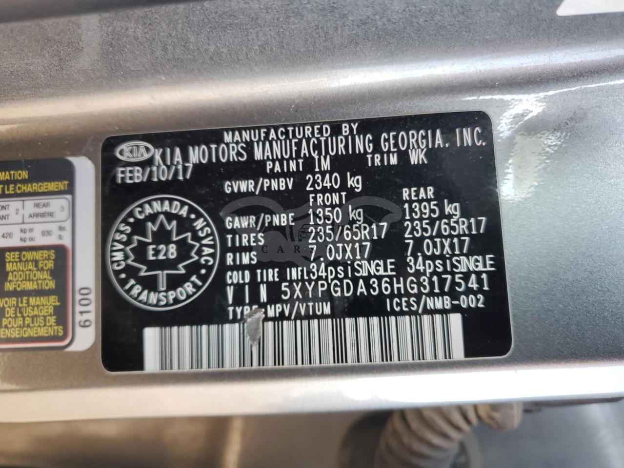 • VIN: 5XYPGDA36HG317541
