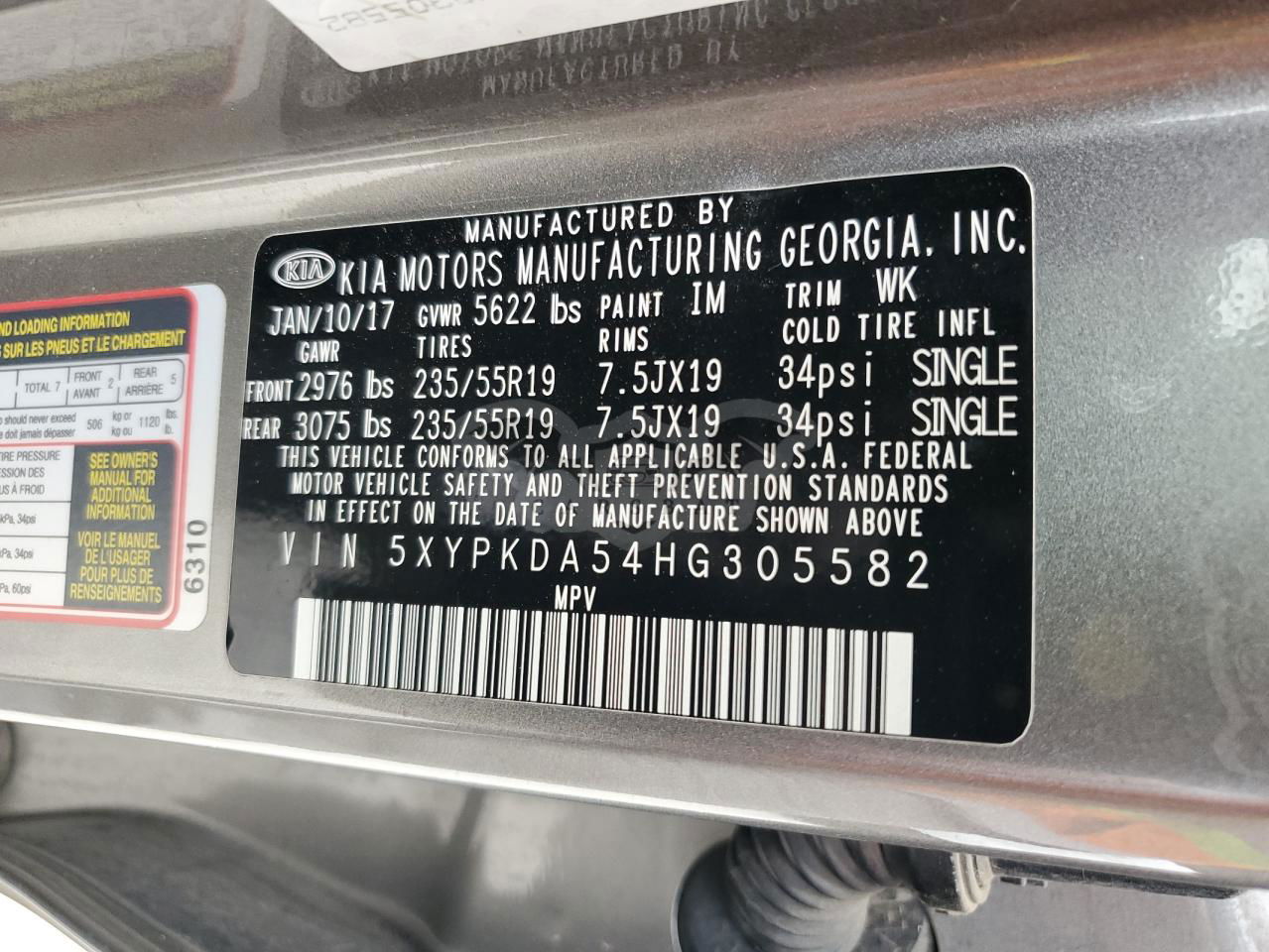 • VIN: 5XYPKDA54HG305582