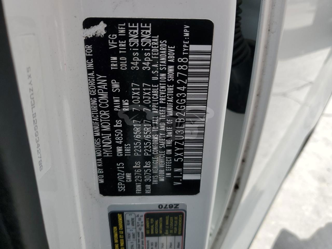 • VIN: 5XYZU3LB2GG342788