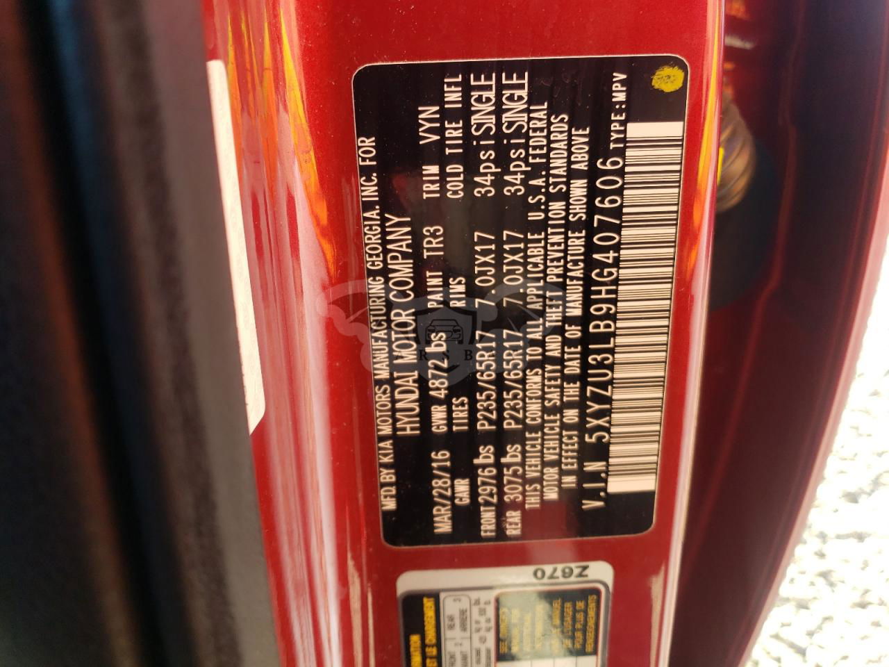 • VIN: 5XYZU3LB9HG407606