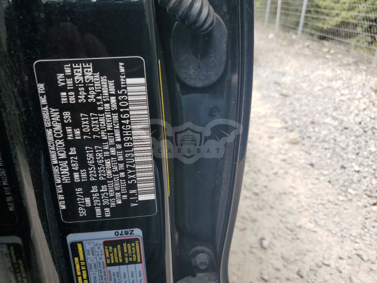 • VIN: 5XYZU3LB9HG461035