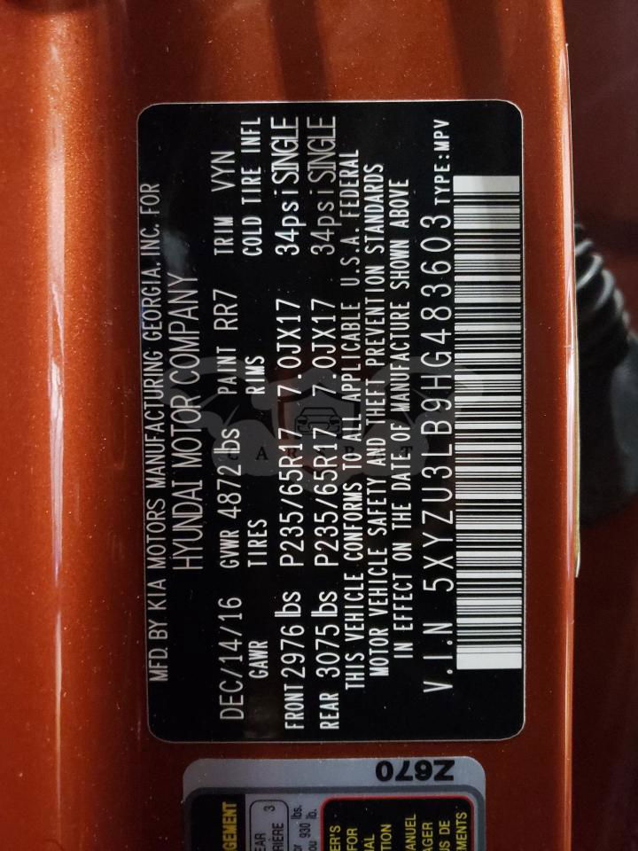 • VIN: 5XYZU3LB9HG483603