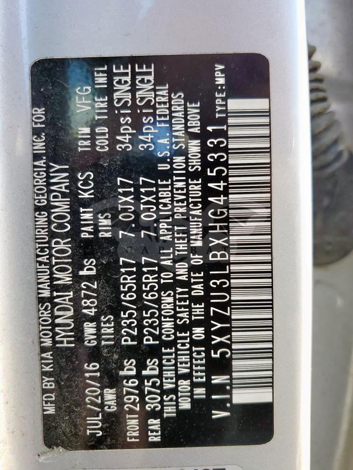 • VIN: 5XYZU3LBXHG445331