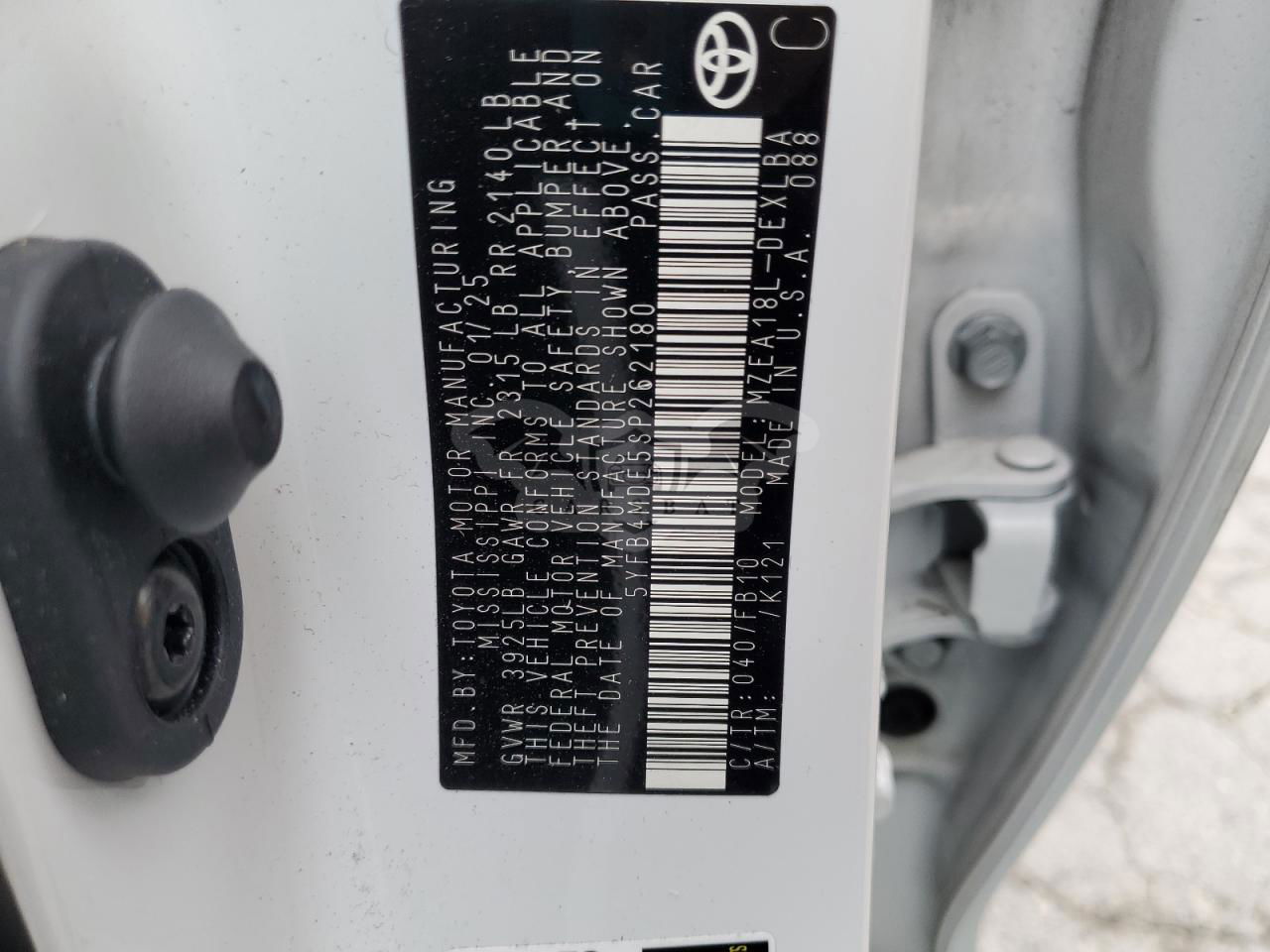 • VIN: 5YFB4MDE5SP262180