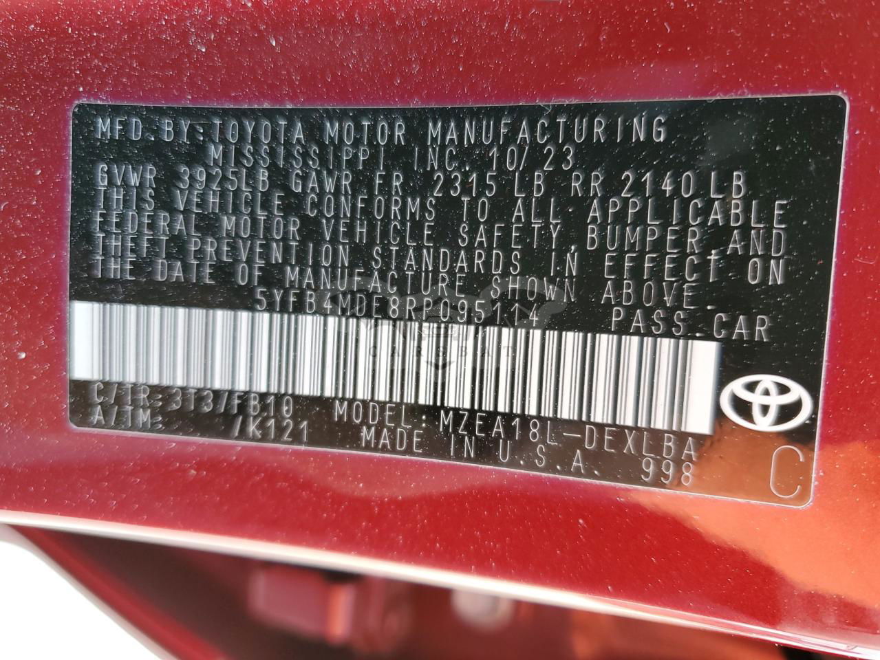 • VIN: 5YFB4MDE8RP095114