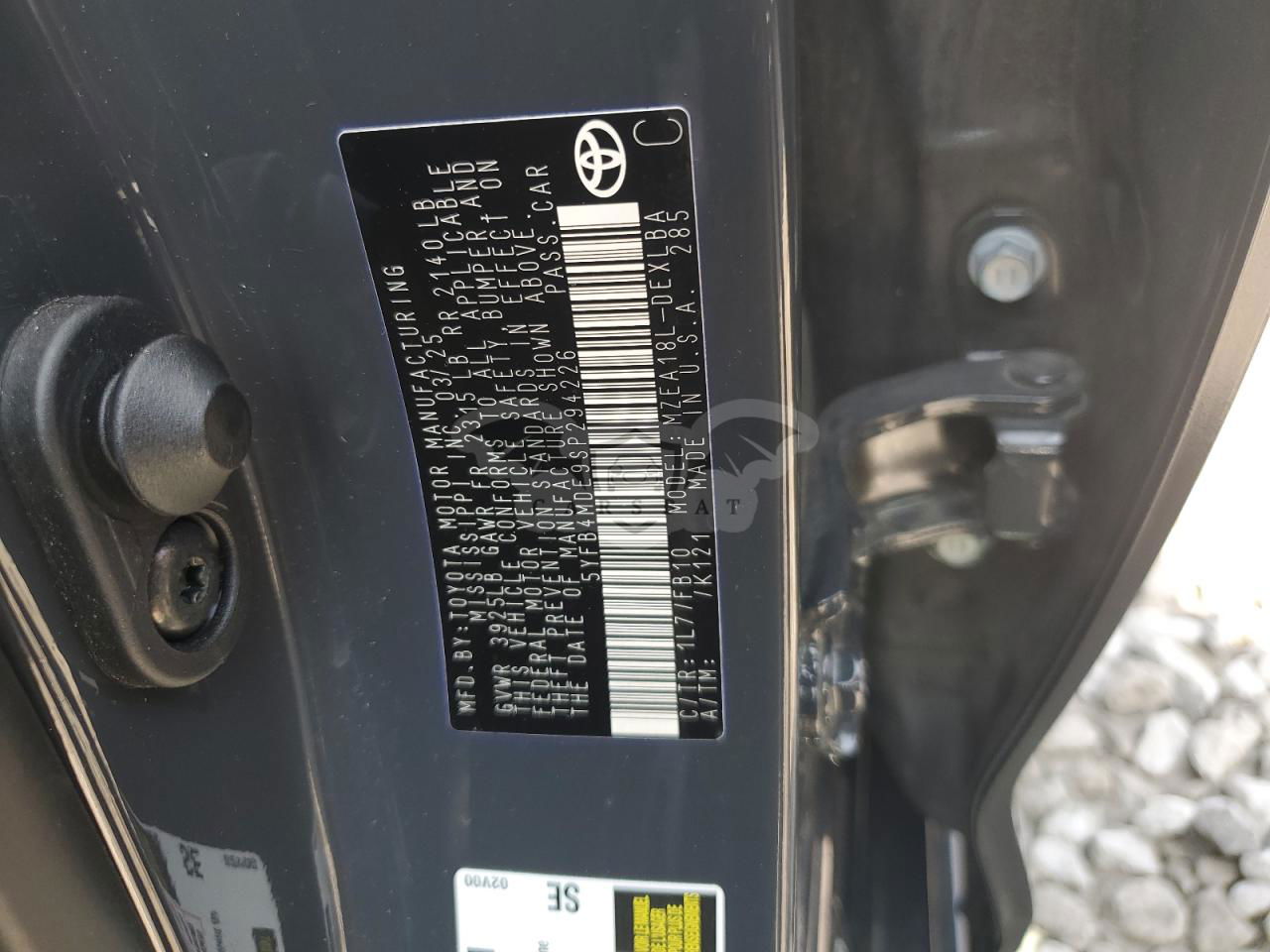 • VIN: 5YFB4MDE9SP294226