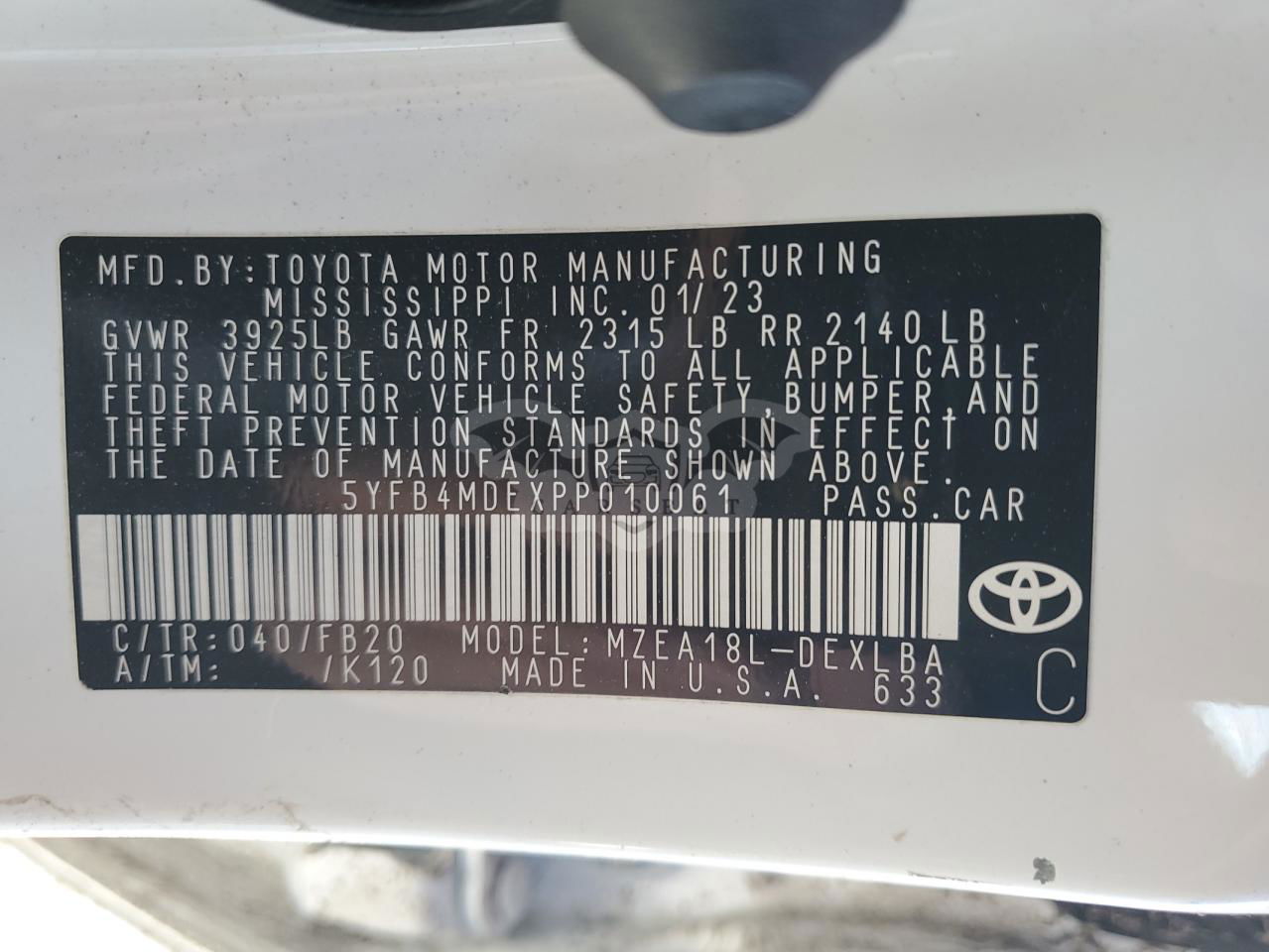 • VIN: 5YFB4MDEXPP010061