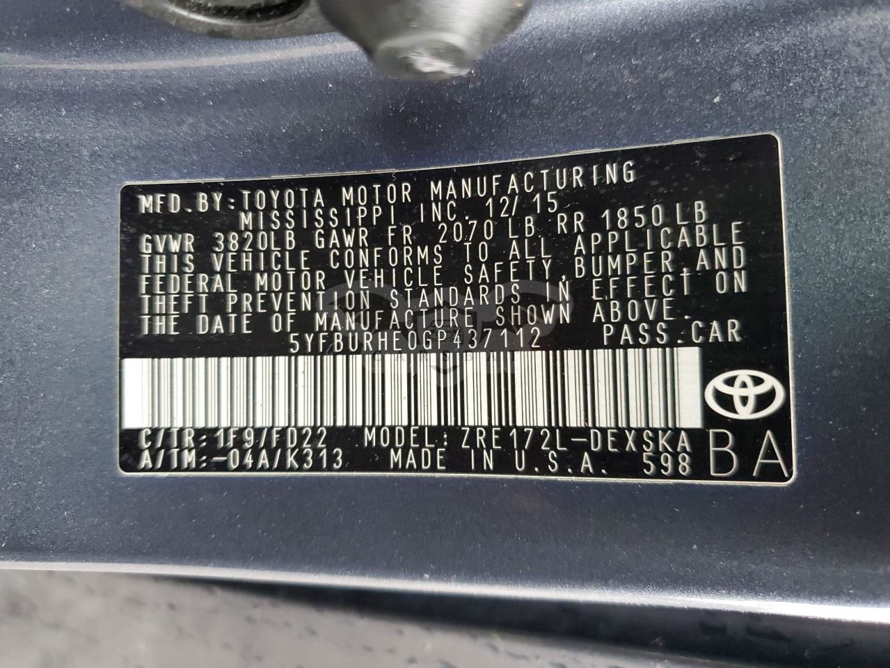 • VIN: 5YFBURHE0GP437112