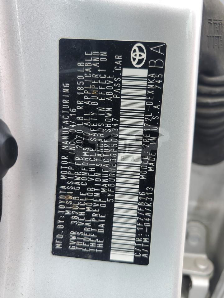 • VIN: 5YFBURHE3GP500347