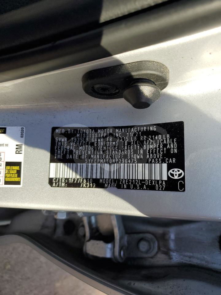 • VIN: 5YFEPMAE0NP296475