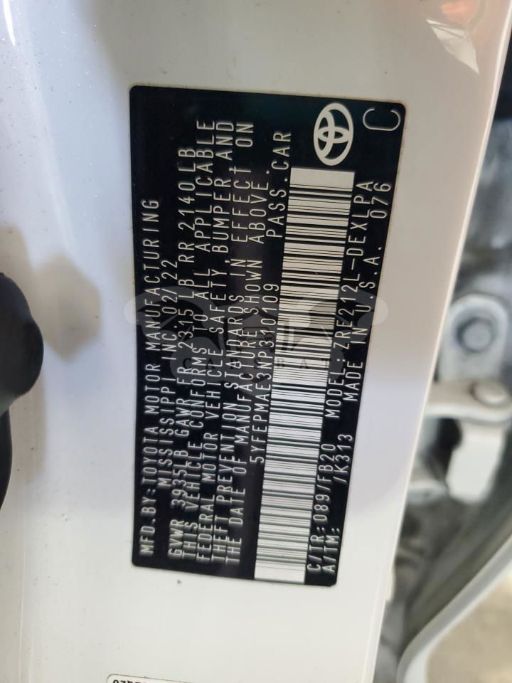 • VIN: 5YFEPMAE3NP310109