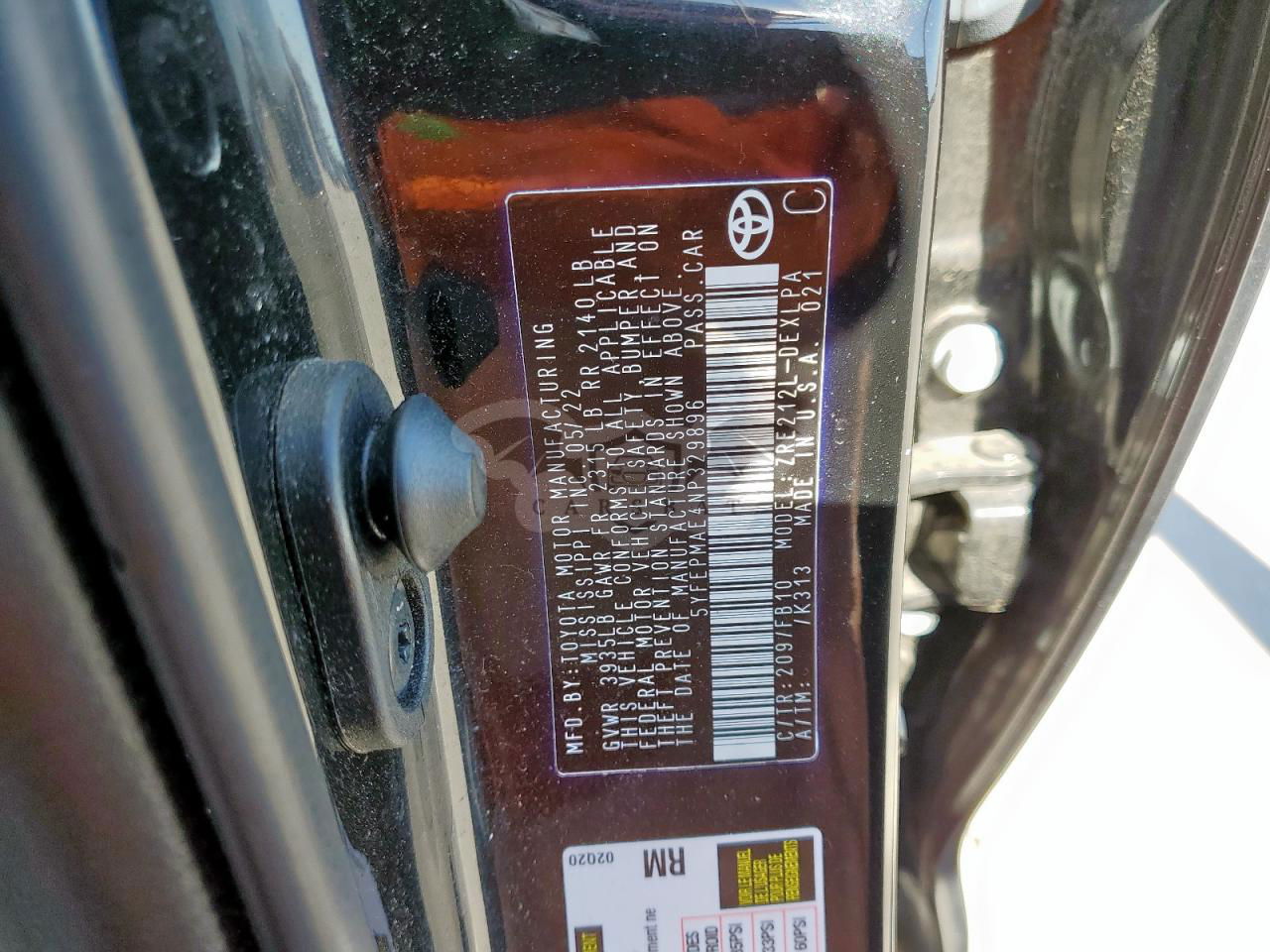 • VIN: 5YFEPMAE4NP329896