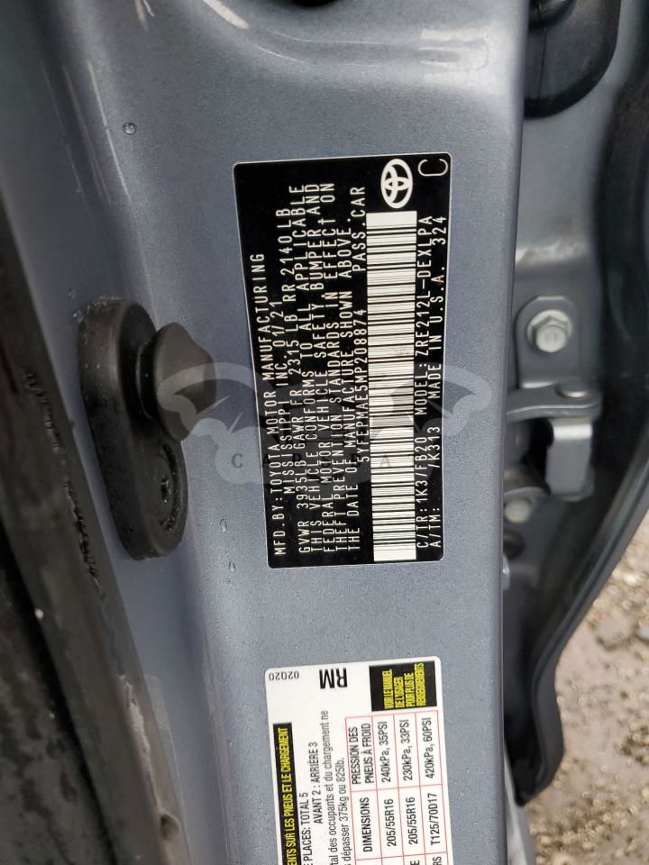 • VIN: 5YFEPMAE5MP208874
