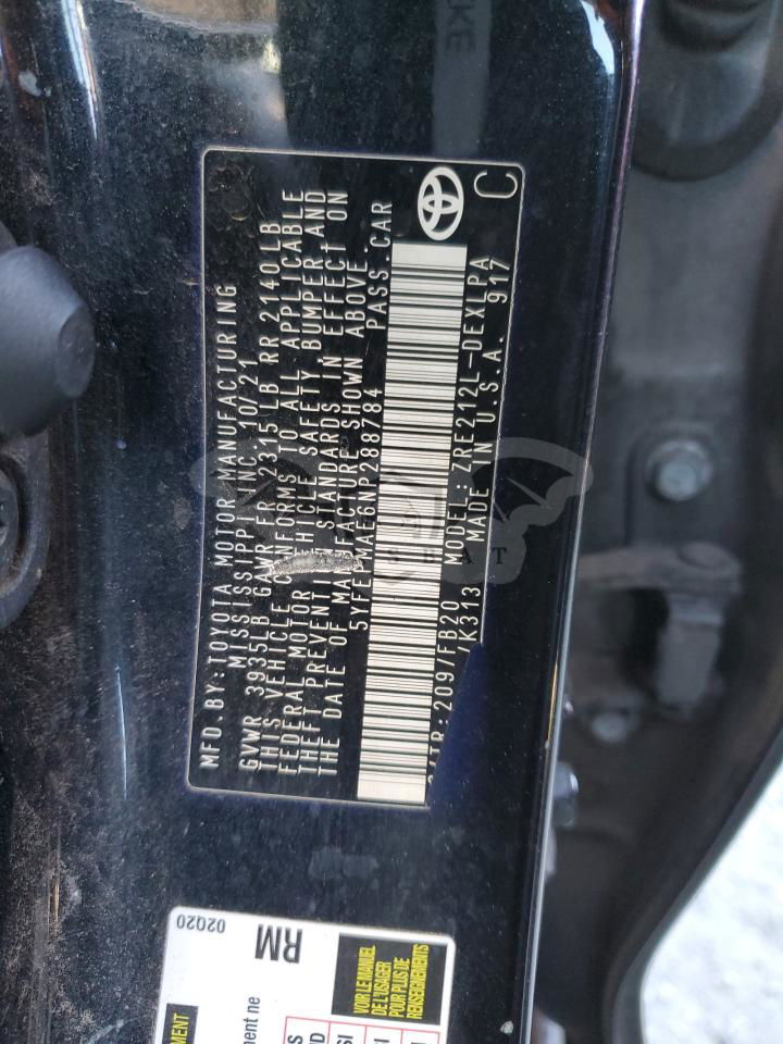 • VIN: 5YFEPMAE6NP288784