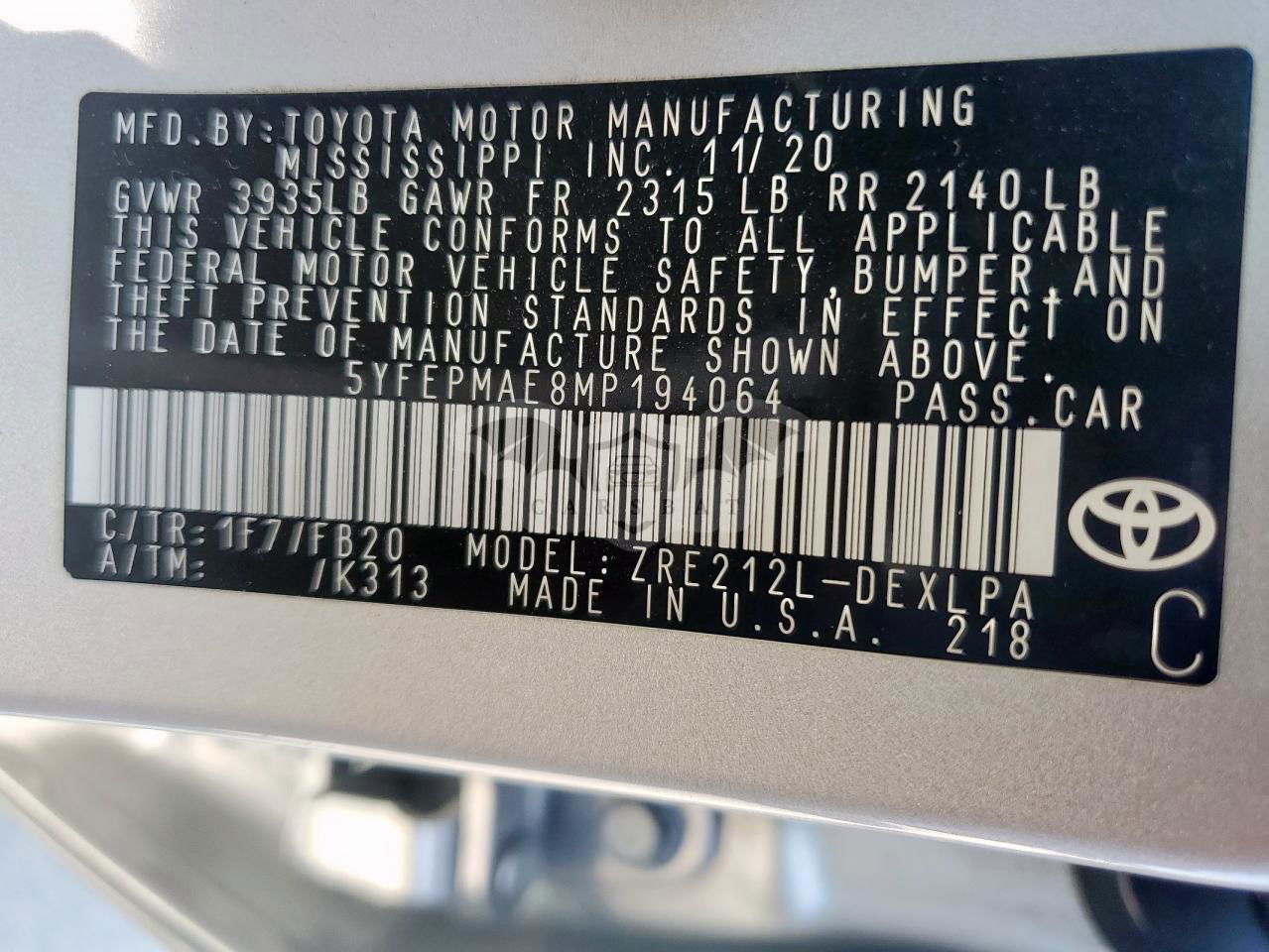 • VIN: 5YFEPMAE8MP194064