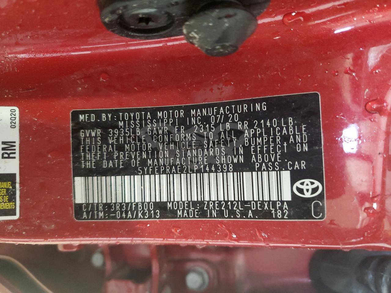 • VIN: 5YFEPRAE2LP144398