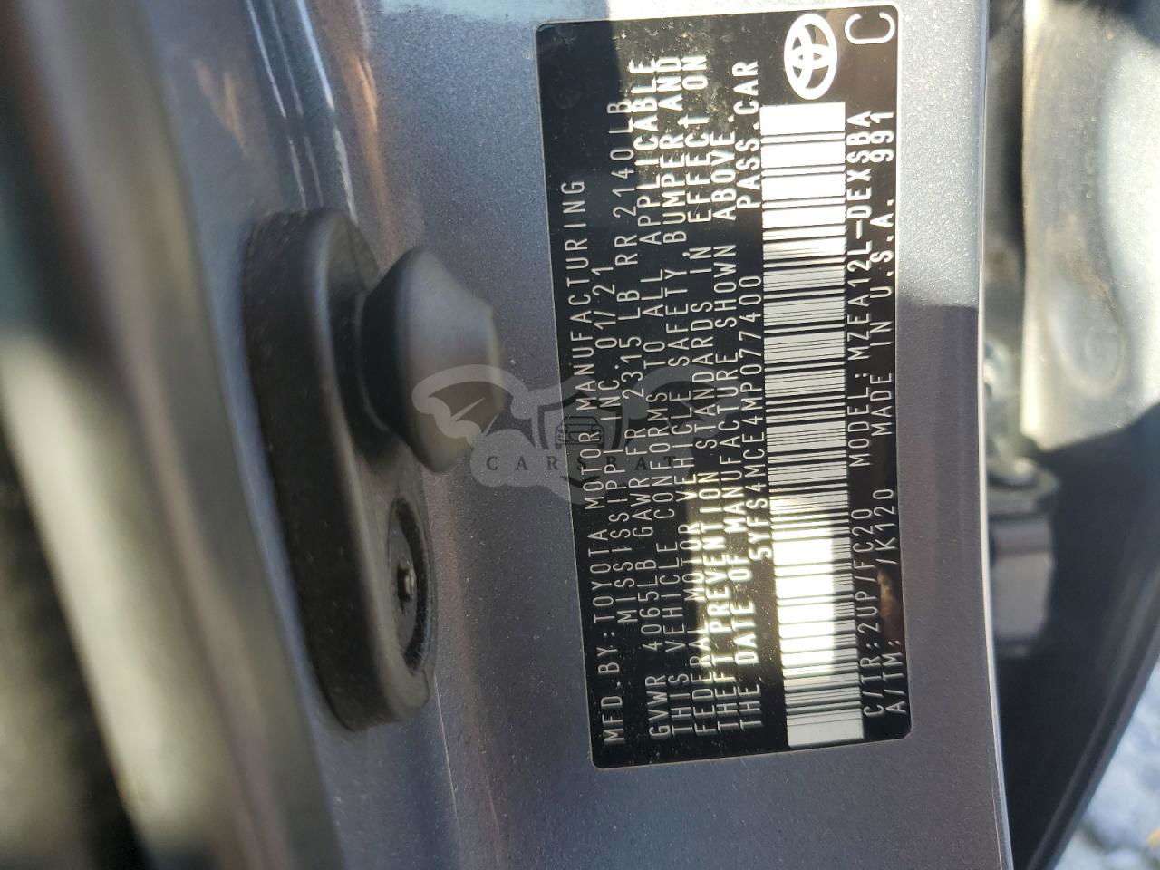 • VIN: 5YFS4MCE4MP077400