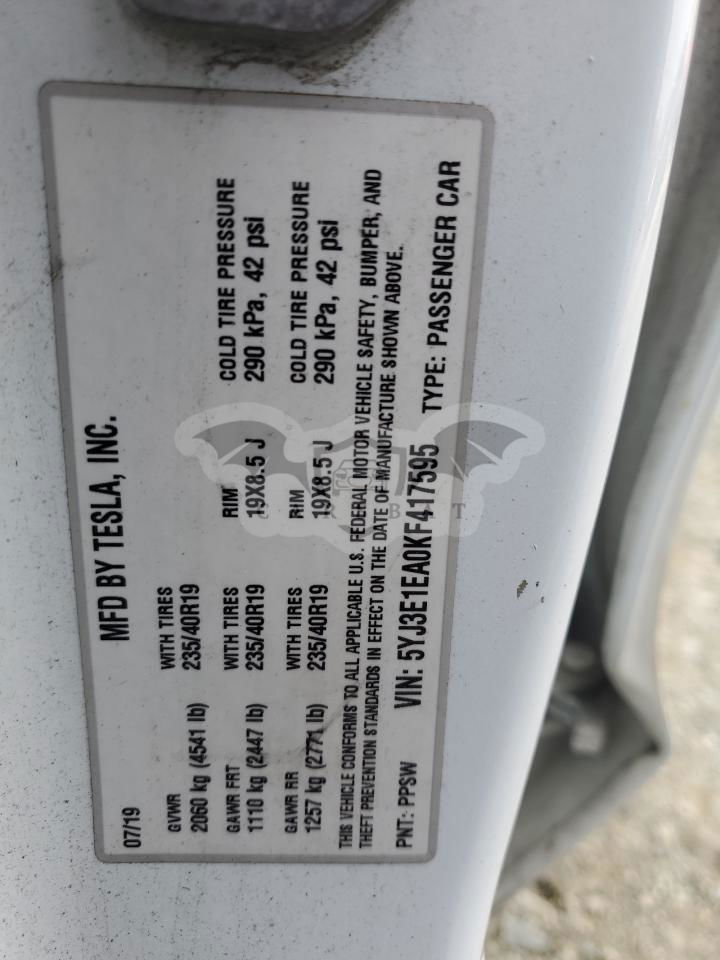 • VIN: 5YJ3E1EA0KF417595