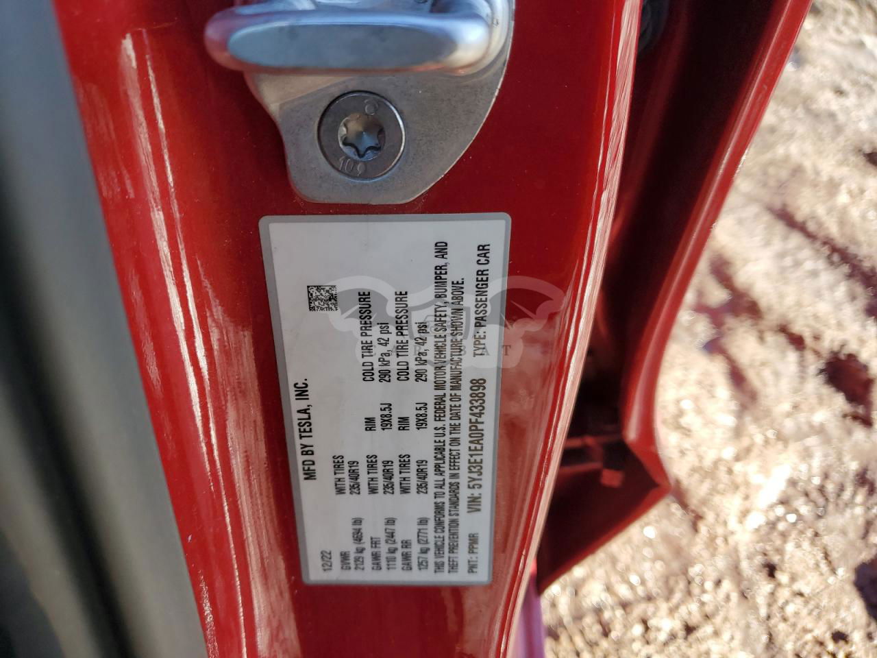 • VIN: 5YJ3E1EA0PF433898