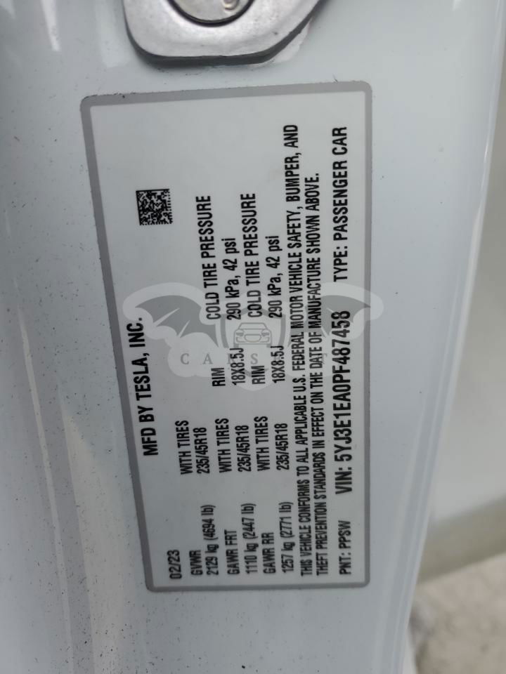 • VIN: 5YJ3E1EA0PF487458