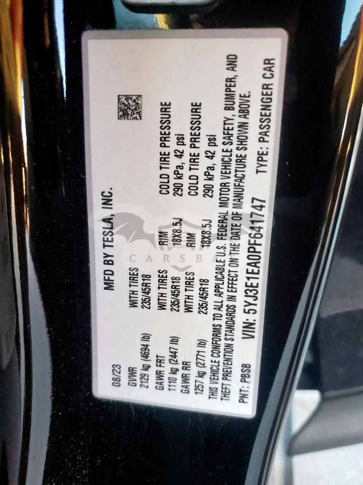 • VIN: 5YJ3E1EA0PF641747