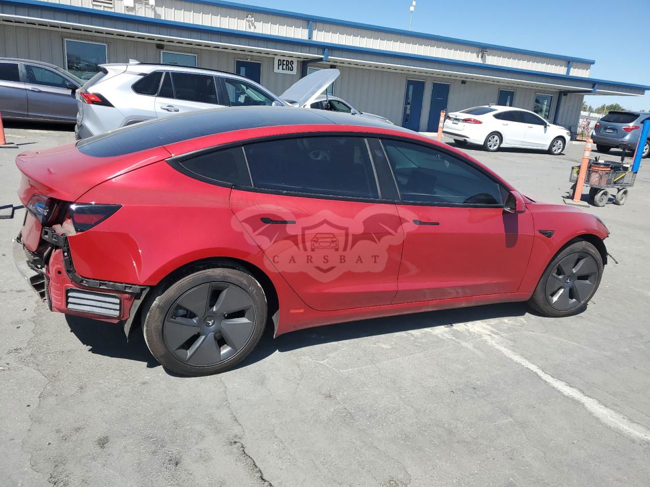 Czerwony Tesla Model 3 2021 roku | Elektryczny