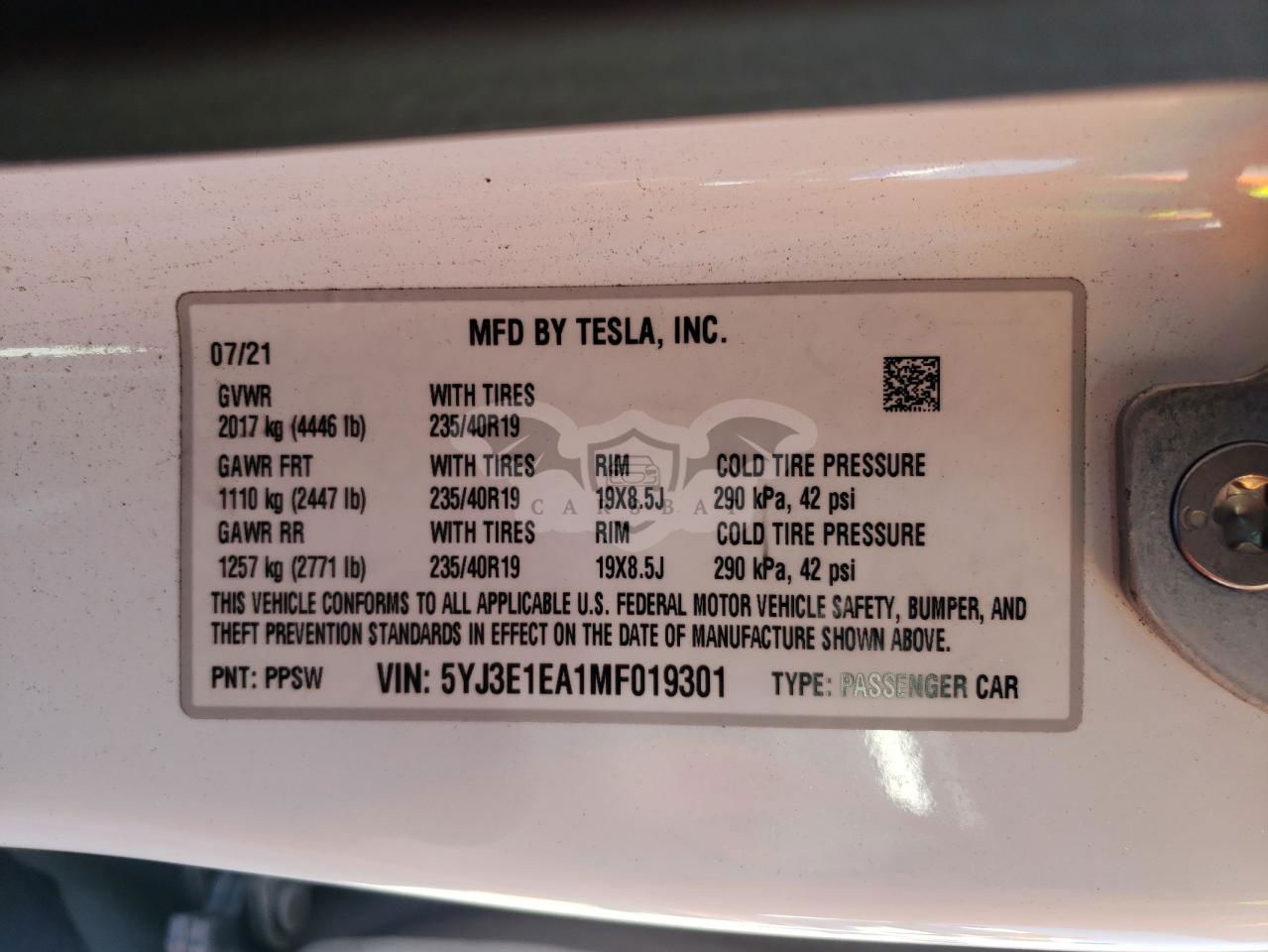 • VIN: 5YJ3E1EA1MF019301