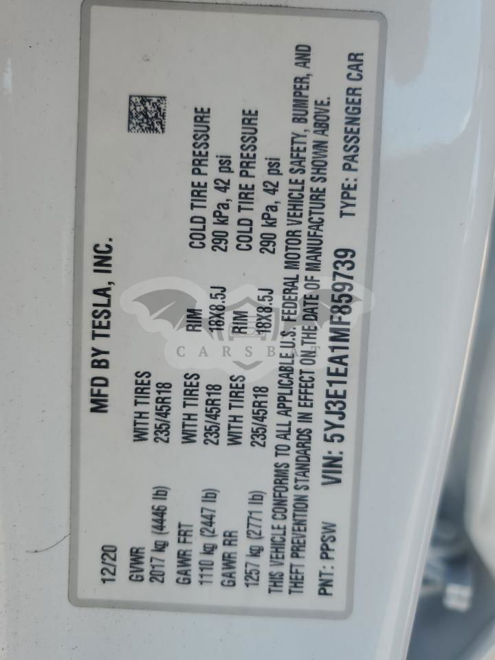 • VIN: 5YJ3E1EA1MF859739