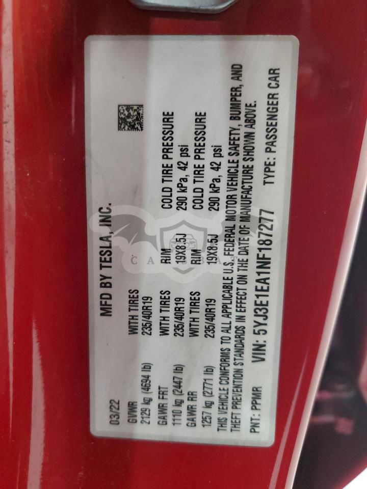 • VIN: 5YJ3E1EA1NF187277