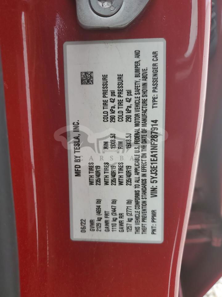 • VIN: 5YJ3E1EA1NF287914
