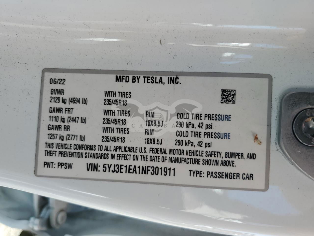 • VIN: 5YJ3E1EA1NF301911