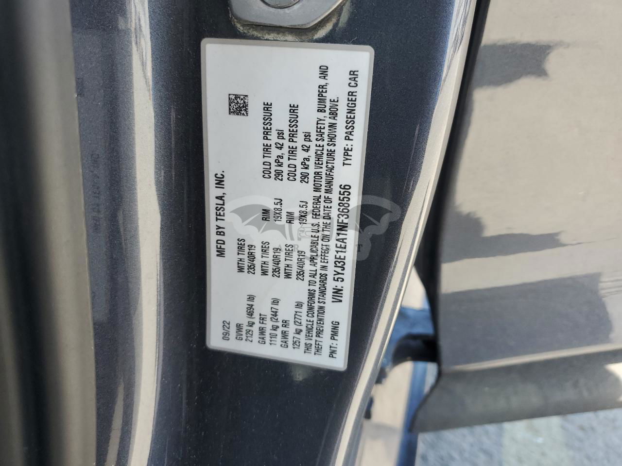 • VIN: 5YJ3E1EA1NF368556