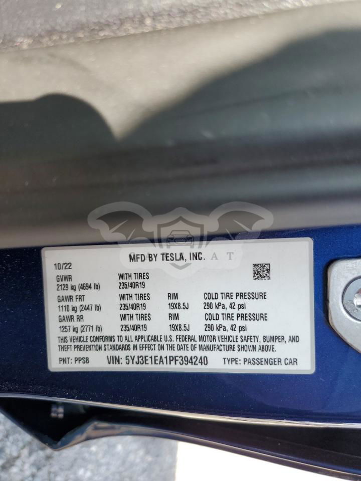 • VIN: 5YJ3E1EA1PF394240