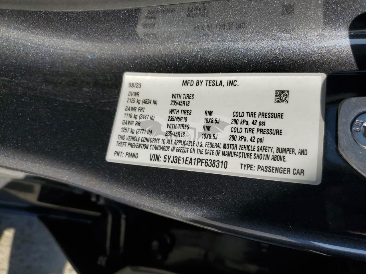 • VIN: 5YJ3E1EA1PF638310