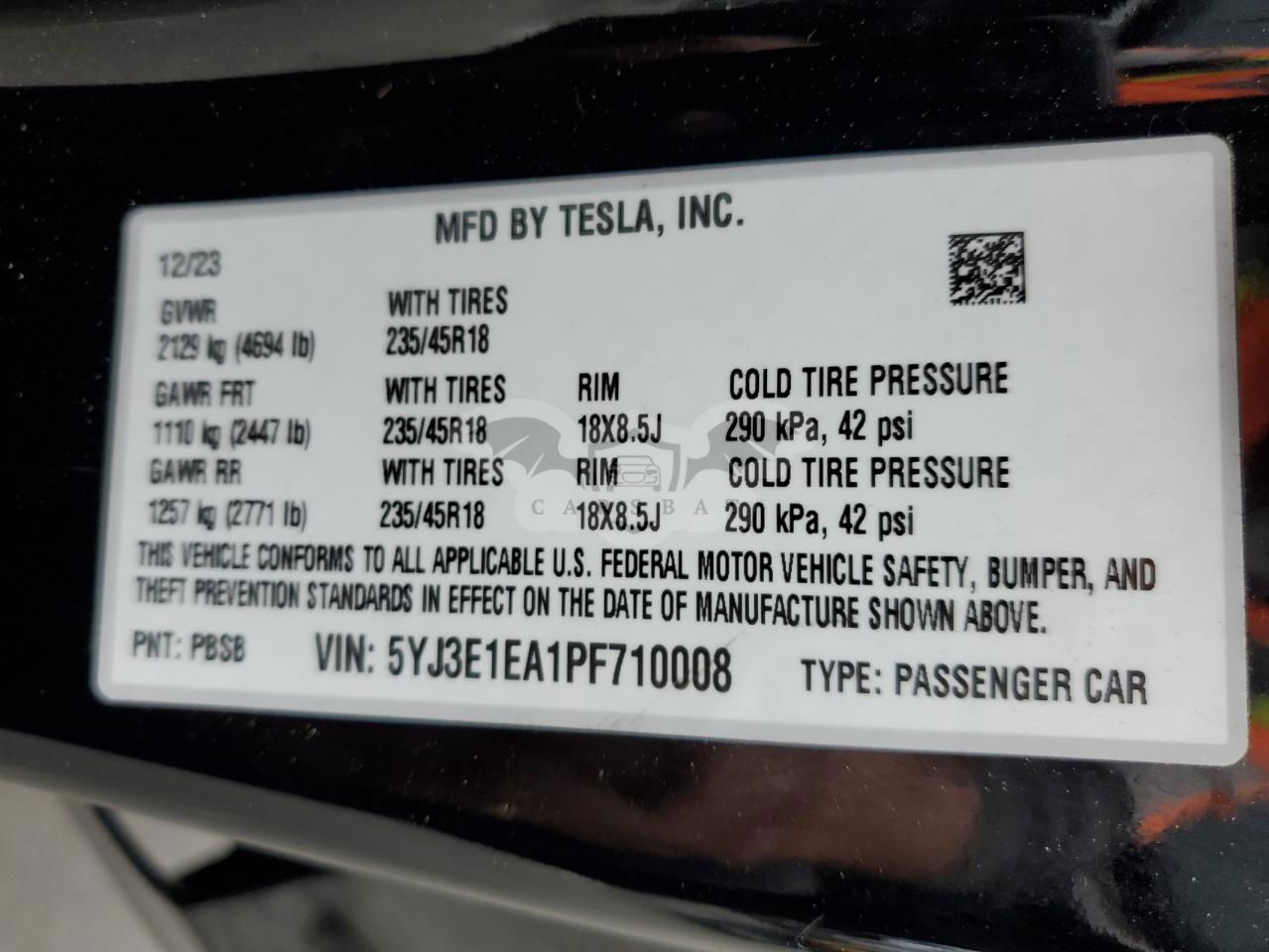 • VIN: 5YJ3E1EA1PF710008