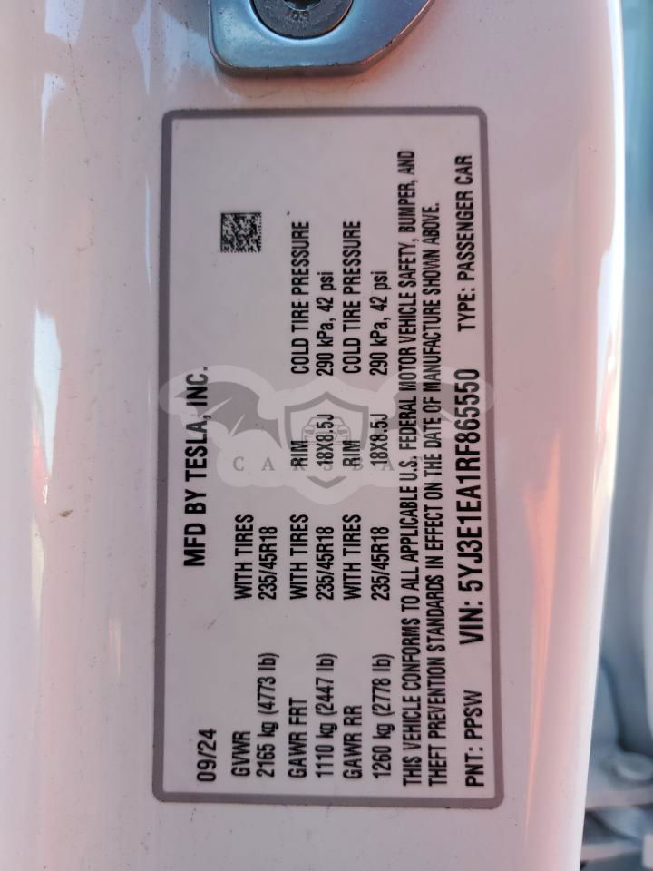 • VIN: 5YJ3E1EA1RF865550