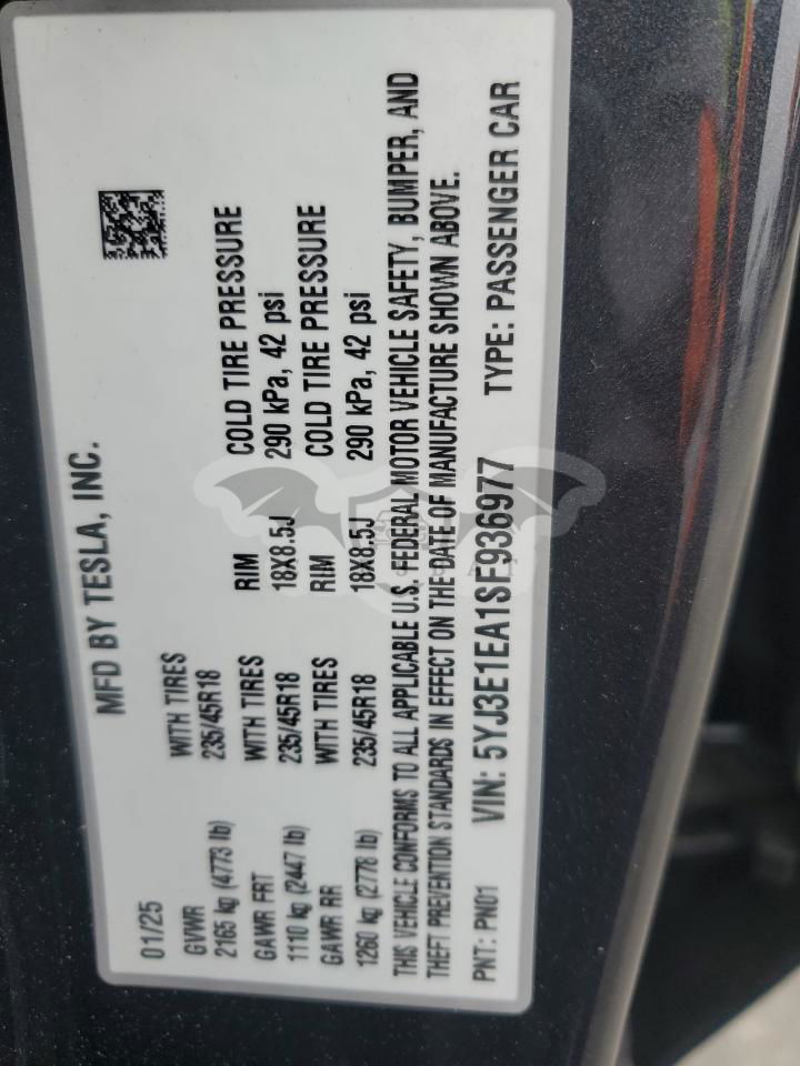 • VIN: 5YJ3E1EA1SF936977