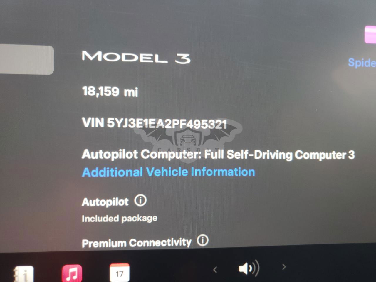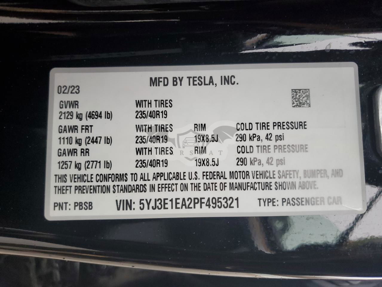 • VIN: 5YJ3E1EA2PF495321