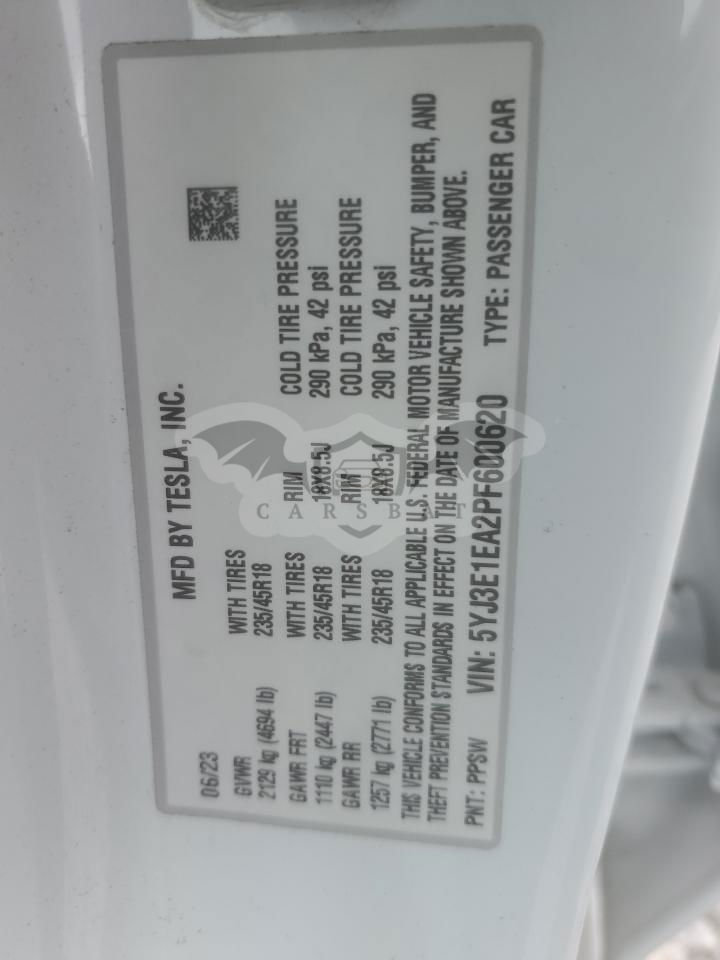 • VIN: 5YJ3E1EA2PF600620