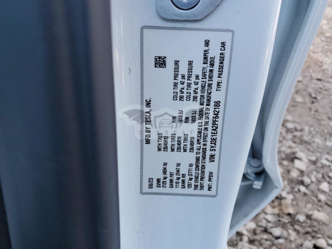 • VIN: 5YJ3E1EA2PF642186