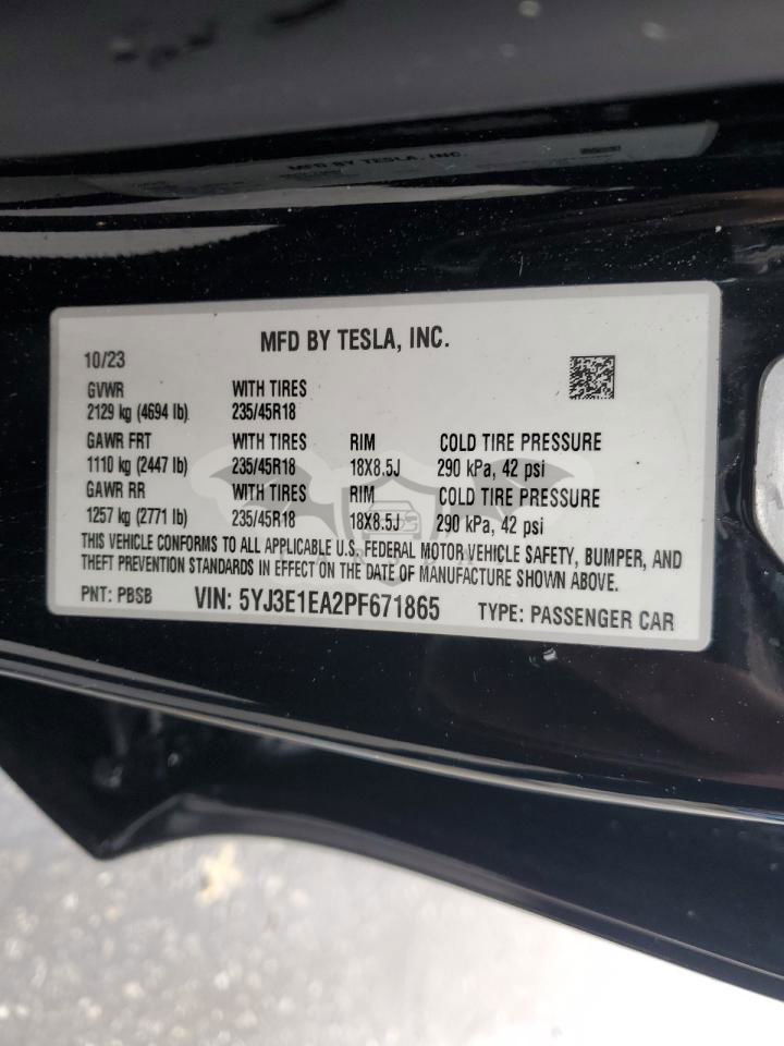 • VIN: 5YJ3E1EA2PF671865
