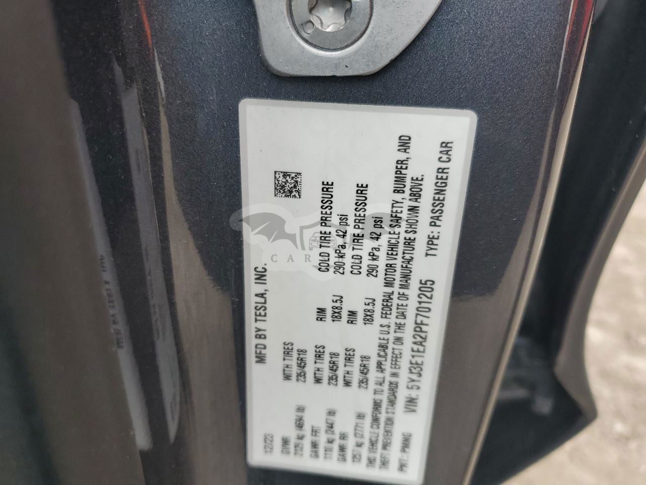• VIN: 5YJ3E1EA2PF701205