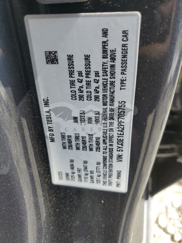 • VIN: 5YJ3E1EA2PF705755